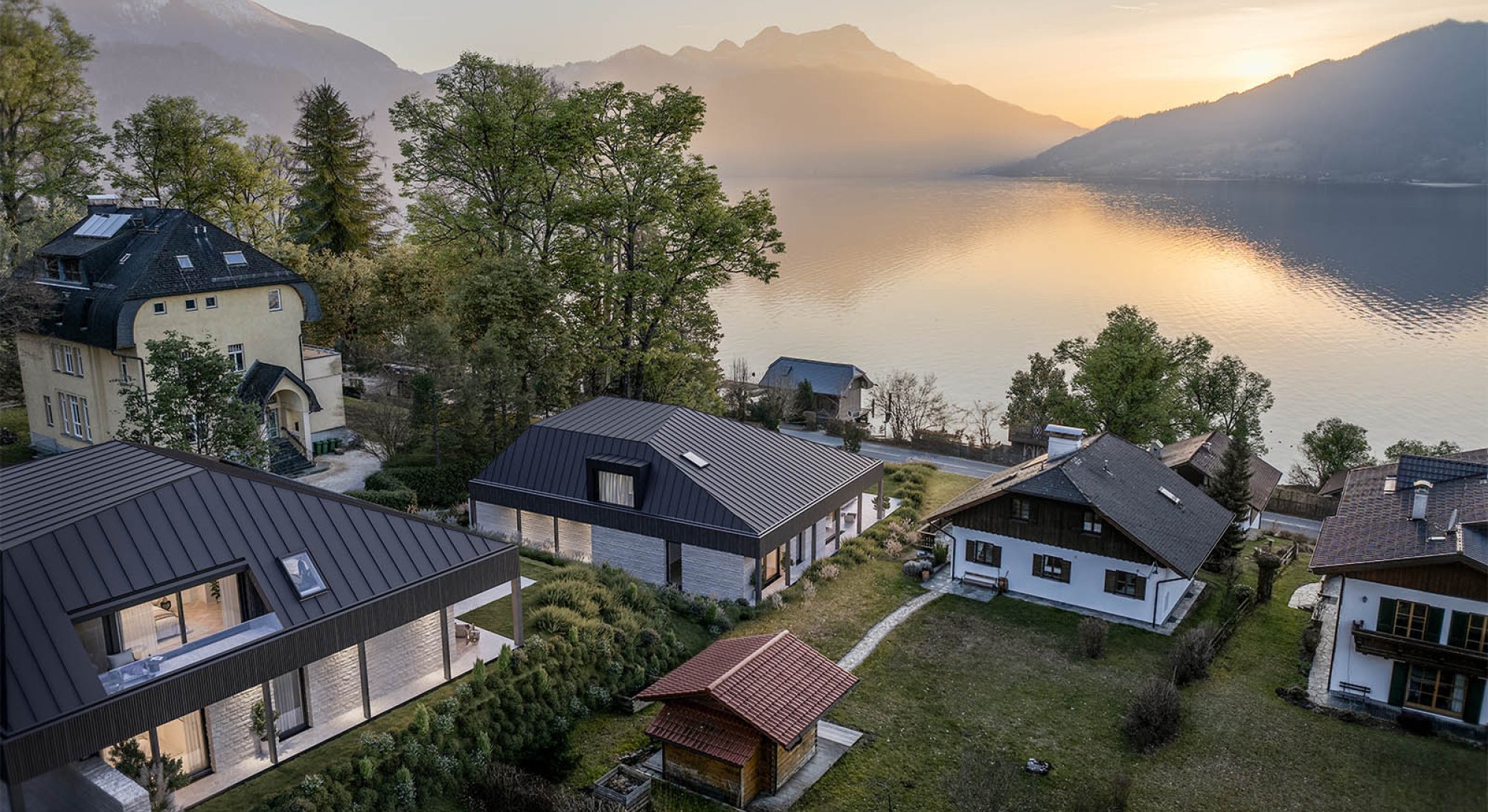 “Live where others go on vacation – exclusive chalets with lake views and private lake access in Steinbach am Attersee.”