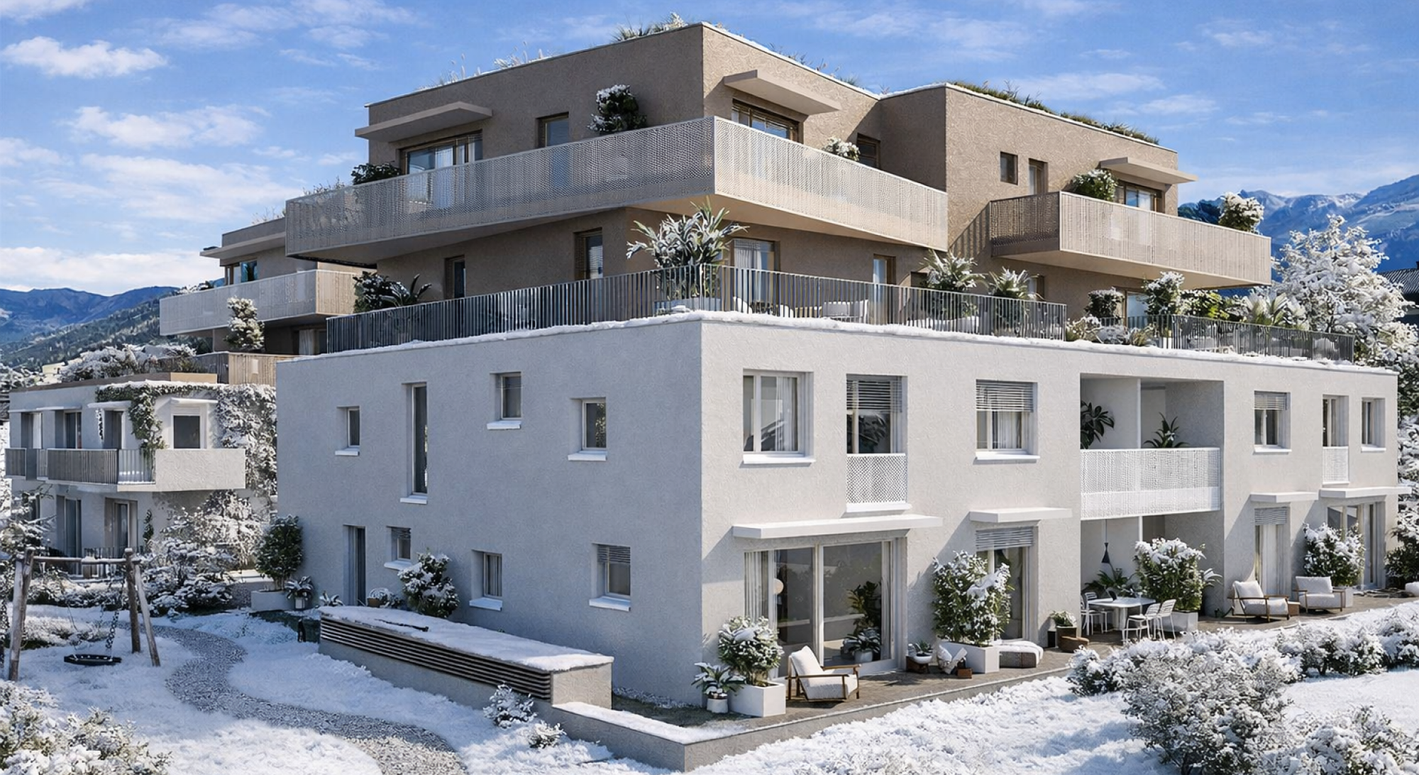 With a well-thought-out spatial concept and light-flooded rooms, this project offers a home that conveys both a sense of security and freedom. Generous window fronts as well as surrounding terraces and balconies open up the view of the breathtaking nature and let plenty of daylight into your home