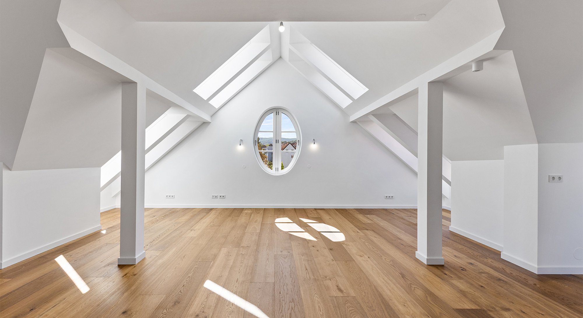 The attic apartments impress with their spaciousness, light-flooded rooms, and amenities that meet the highest standards.